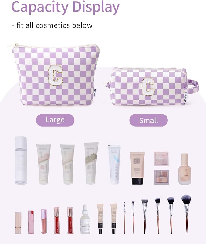 Narwey 2 PCS Valentines Day Gifts for Her Girlfriend Women Initial Makeup Bag, Teen Girls Gifts Trendy Stuff 10 11 12 14 13 15 16 Years Old, Travel Toiletry Bags Cosmetic Bag Teacher Gift (C)