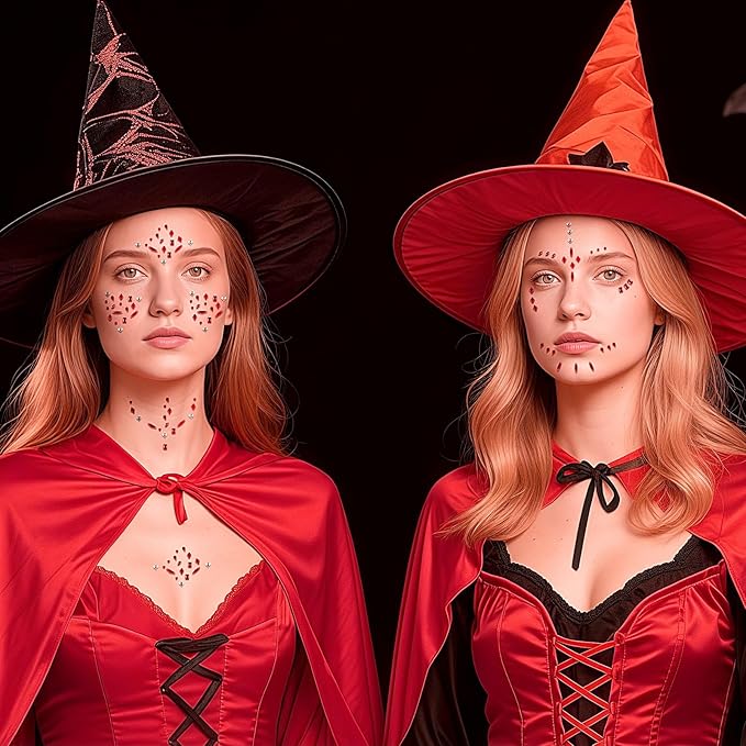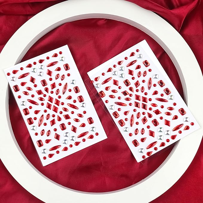 - Makeup Face Gems Self-Adhesive: Elevate your makeup game with our makeup face gems set. This set includes 2 sheets of red clear face rhinestones, along with precision tweezers, all crafted from high-quality, hypoallergenic materials. Gentle on the skin, these gems ensure a comfortable wearing experience for all ages and skin types, making them the perfect addition to your Halloween makeup arsenal