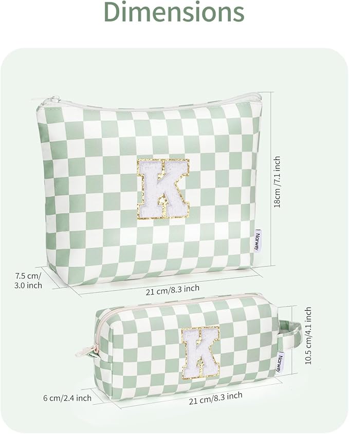 Narwey 2 PCS Valentines Day Gifts for Her Personalized Initial Makeup Bag, Girlfriend Teacher Women Teen Girls Gifts Trendy Stuff 10 11 12 14 13 15 16 Years Old, Travel Toiletry Bags Cosmetic Bag (K)