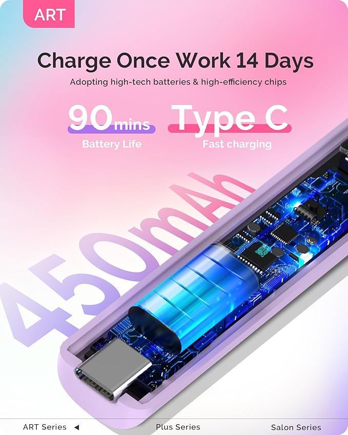 - Rechargeable & Portable - Experience the convenience of our 450mAh battery-powered cordless UV Led nail lamp! With a single charge, enjoy up to 14 days of use. Its lightweight and compact design makes it the perfect travel companion, so you can easily take it anywhere. Whether you're on a trip/Girls' night with your friends, this portable nail lamp is your ultimate beauty buddy!