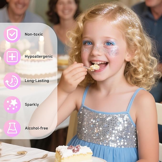 - Natural Ingredients -Glitter face paint Holographic sequins are 100% safe and non-irritating,you dont have to worry about glue irritating your skin,Show off your true colors with this lightweight, long-lasting, and super-sparkly glitter gel that dries clear. No primers or adhesives are required.