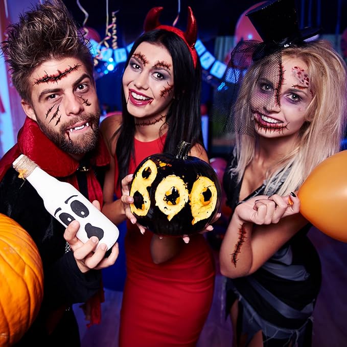 - Realistic Zombie Makeup: Halloween temporary tattoos look realistic, especially if you add simple makeup around them. You will get 12 sheets of horror realistic Halloween tattoos stickers, scar makeup for Halloween parties, cosplay parties, playing dress up, etc