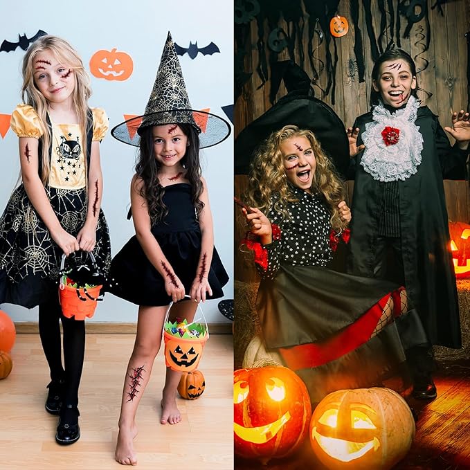 - Widely Application: These Halloween tattoos for kids are great for Halloween cosplay costumes, Halloween face makeup, Zombie costume for Halloween parties, Halloween party favors, goodie bag favors, birthday party supplies and decorations, Halloween gifts, etc