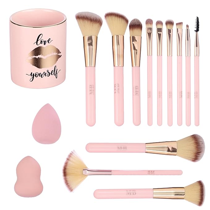15pc Beauty Set - Beautiful Makeup Brush Collection with Beauty Blenders, Spoolie and Storage Tumbler | Professional Cosmetic Brushes For Seamless Makeup Application