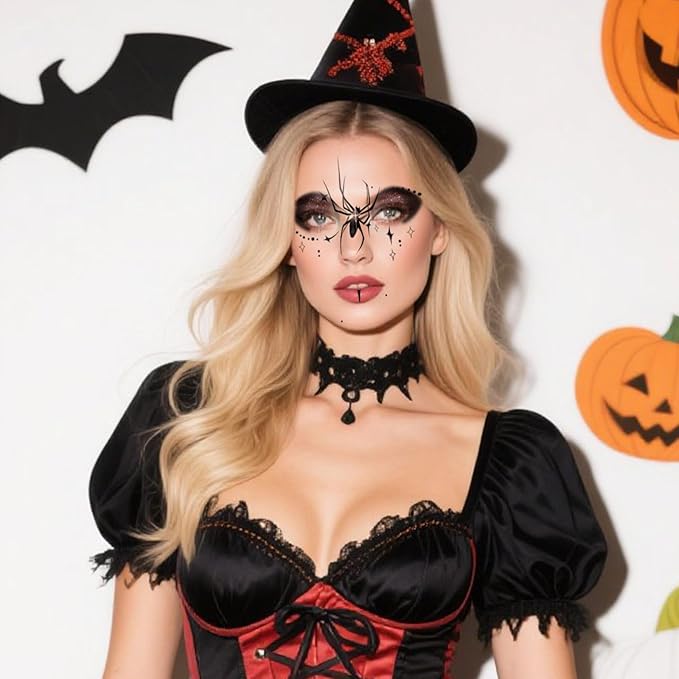 - 【What You Get & Quantity】Receive 8 reusable Halloween face tattoos featuring bold black spider silhouettes, luminous star, and minimalist dot accents. Instantly create a mystical atmosphere for any costume. Includes versatile patterns for eyes, cheeks, or forehead application.