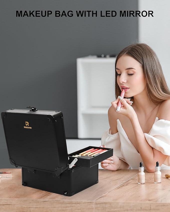 - Portable Makeup Bag with Mirror: This makeup case offers organized storage for your essentials, featuring 2 trays and a rechargeable LED mirror that doubles as a portable vanity. Measuring 9.8" x 8.6" x 6.1", it’s perfect for daily use and travel, meeting a variety of storage needs.