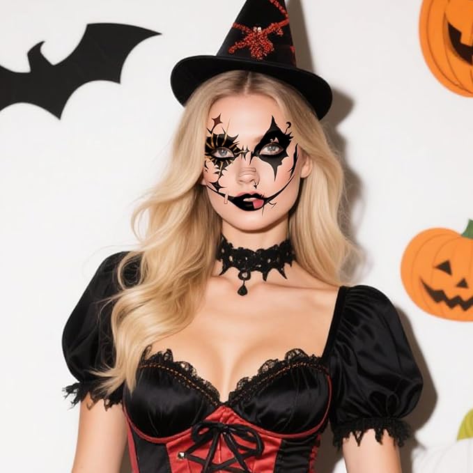 - 【What You Get & Quantity】This set includes 8 unique Halloween temporary face tattoos, ensuring you have plenty of options to match with multiple costumes or share with friends and family. These Halloween temporary tattoos are a quick and easy way to create a stunning look.