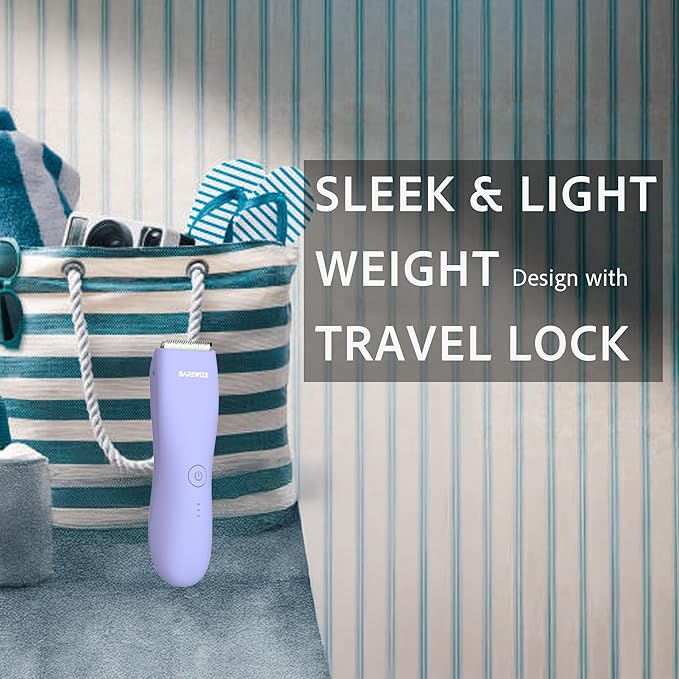 Bikini Trimmer for Women, Pubic Hair Trimmer, Waterproof, USB-C Rechargeable, LED Light, Replaceable Blade, Electric Razors for Women, Electric Lady Shaver (Iris)