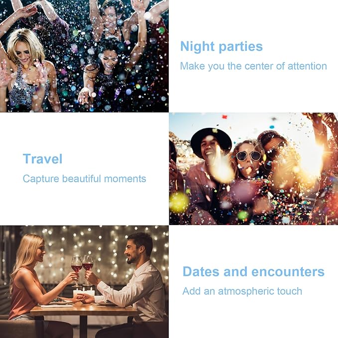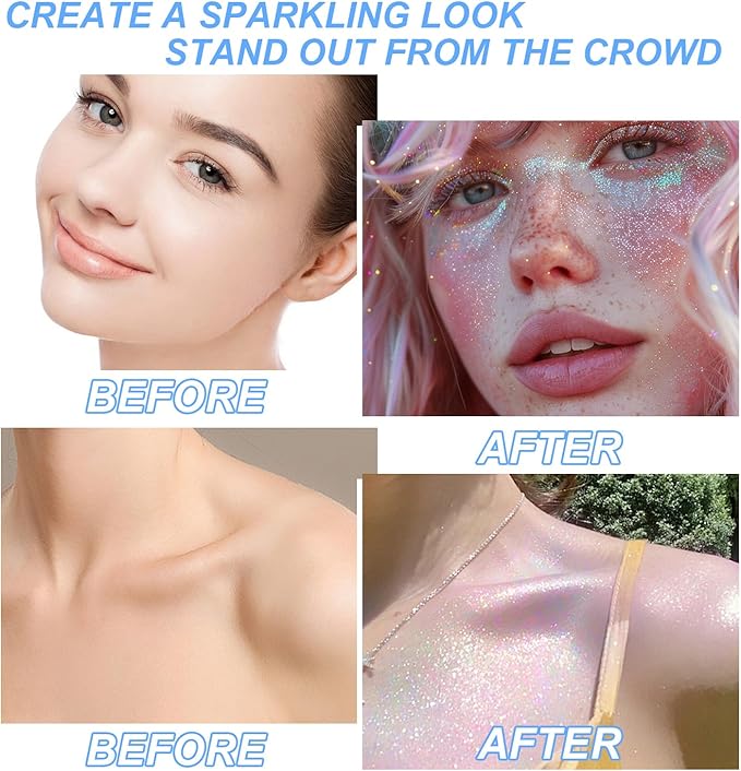 - Versatile Sparkle: Our body glitter spray for women is your go-to for adding shine anywhere—hair, face, neck, legs, or even your outfit! Perfect for Mardi Gras, St. Patrick's Day, 4 of July Independence Day, Coachella, Halloween, Christmas, Valentine's Day, New Year,birthday celebrations, masquerade balls, nightclubs, festive events, stage performances, weddings, dances, Halloween, Christmas, and more. Wherever the occasion, let your sparkle steal the show!