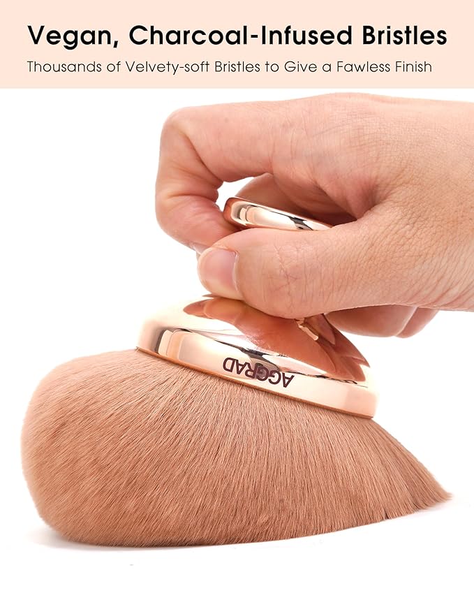 - CONCIOUSLY CREATED! Extra large Kabuki brush handcrafted with love, each piece boasts the exquisite touch of velvety material, densely-packed charcoal-infused vegan bristles evenly disperse beauty product for self tanner, hugging every curve for flawless body coverage for legs make up, arms, back and décolleté! With a comfortable handle ensures easy accessibility to even the hardest-to-reach places.