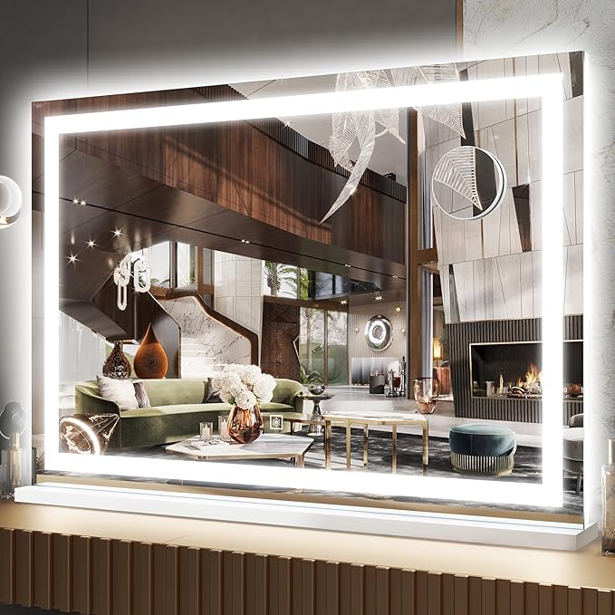 FENNIO Large Vanity Mirror with Lights,32" x 22"Lighted Makeup Mirror, Large Makeup Mirror with Lights, Touch Sensor with Dimmable 3 Modes, Vanity Mirror Square White