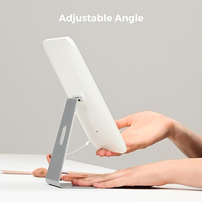- Elegant & Functional; Crafted with a sturdy metal stand, high-quality ABS, and crystal-clear glass, this desk mirror offers a spacious 12×7 inch viewing area with adjustable tilt for the perfect angle