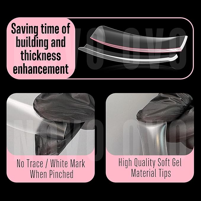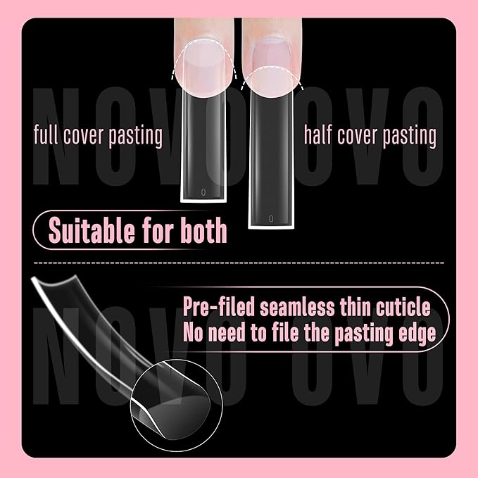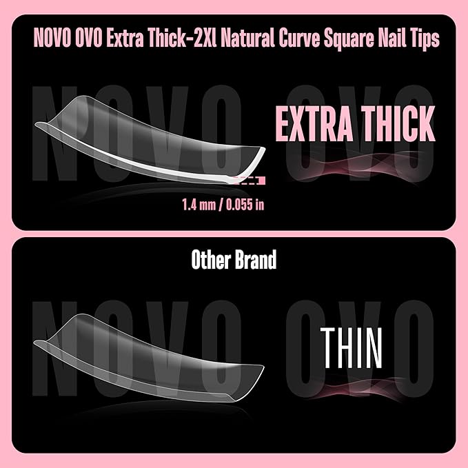 NOVO OVO Halloween XXL Shape Square Slight Curved Nail Tips No C Curve, Extra Thick Natural Curve Clear False Nails Press on, Full Cover Soft Gel Extension Fake Nail Acrylic for DIY x 15 Size 240pcs