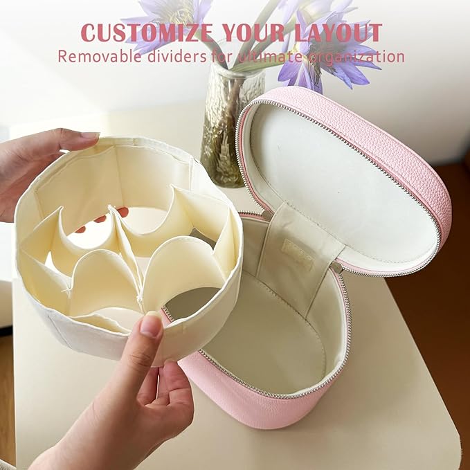 - Adaptable & Accessible Design: Equipped with removable poly-cotton dividers, this make up bag keeps your cosmetics, tools, or skincare products neatly arranged. Its clever layout ensures contents are secure and readily accessible, making it perfect for on-the-go touch-ups. More than a makeup organizer, it's a versatile makeup vanity bag suited for any style or occasion