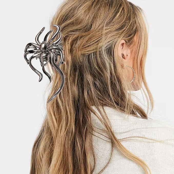 3 Pcs Halloween Hair Claw Clips Hair Accessories for Women Girls, Gothic Black Metal Spider Large Medium Size Catch Clips for thick Hair Styling Tool Holiday Gifts(Black Gun)