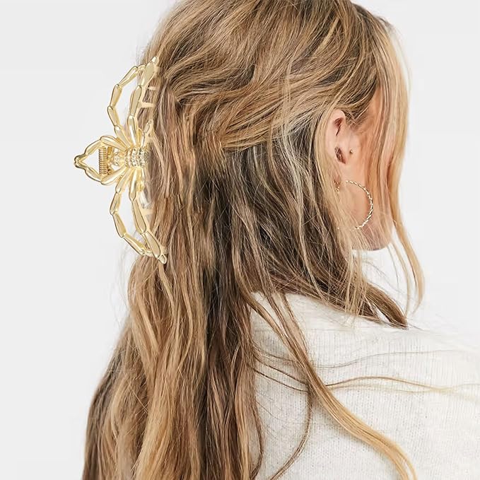 3 Pcs Halloween Claw Clips for Women, Gothic Hair Claws Metal Spider Big Jaw Clamps Hair Accessories for thick Hair Styling Tool Holiday Gifts(Golden)