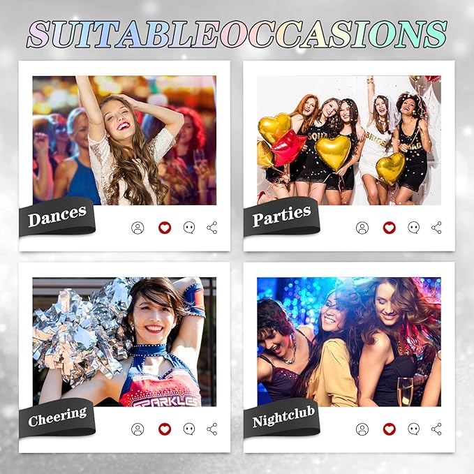 - 【Holographic Effect】The holographic glitter is lightweight,breathable,and highly reflective,showcasing multidimensional shimmer under different lights and angles.Make yourself the center of attention at parties or masquerade balls