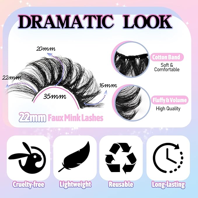 About This Dramatic & Fluffy Lashes: These eyelashes are super fluffy and soft! 22mm lashes with 5d layer and alternating... Read more