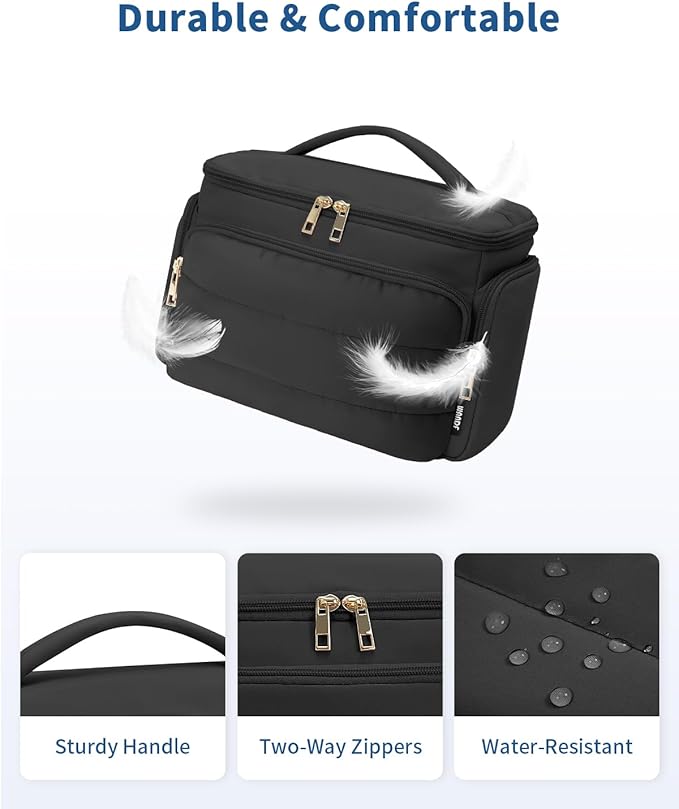 - 【Structured and Soft】Crafted from durable, water-resistant quilted fabric, this makeup bag organizer stands upright, resists spills, and keeps its shape—even when fully packed.