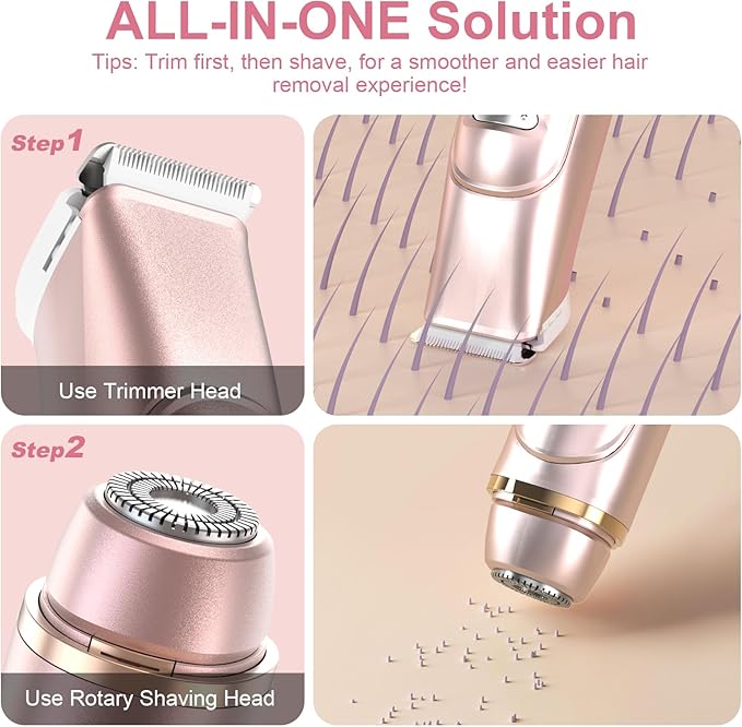 - Painless & Gentle Lady Shaver: Dual head shaver ideal women trimmer for pubic hair, ensuring a pain-free, irritation-free grooming experience, especially in sensitive areas