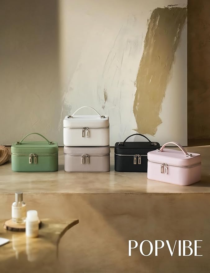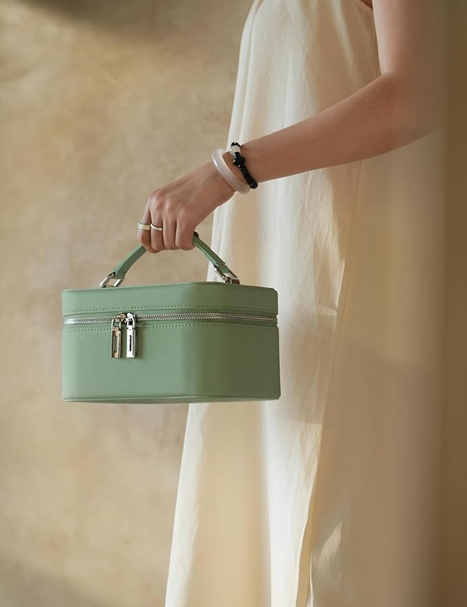 - [Premium Materials] – Crafted entirely from high-quality Saffiano leather, both the interior and exterior of the makeup case ensure exceptional durability and easy maintenance. The sturdy handle and silver hardware add a sophisticated touch, while the rotatable mirror lid allows for effortless angle adjustments, ensuring you always have the best view.