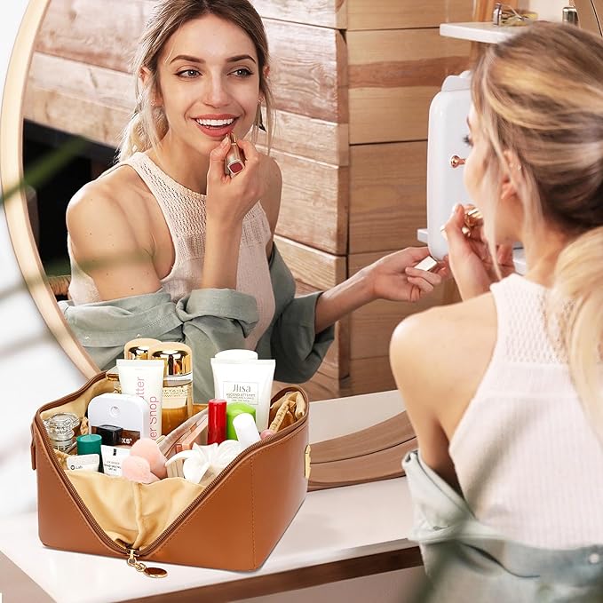 - Easy Access: With an innovative 180-degree wide-open and flat design, this travel makeup bag for women provides a full view of your cosmetics, enabling instant access to essentials. Say goodbye to cluttered storage and embrace ultimate convenience
