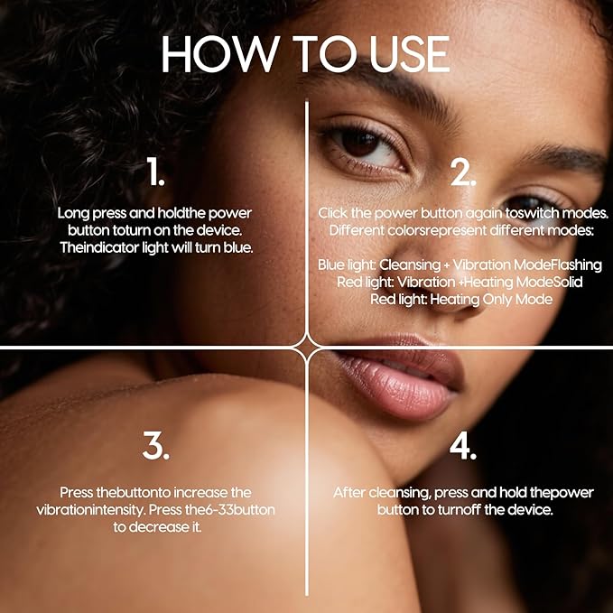- IPX6 Waterproof Design: The facial cleansing brush with heating and vibration has an IPX6 waterproof design. It can be used safely when taking a bath or washing your face. After use, rinse it directly with clean water without pressure to keep it clean and hygienic. The bottom is equipped with a USB-C charging port, which supports multiple charging methods (computer, mobile power supply, adapter, etc.)