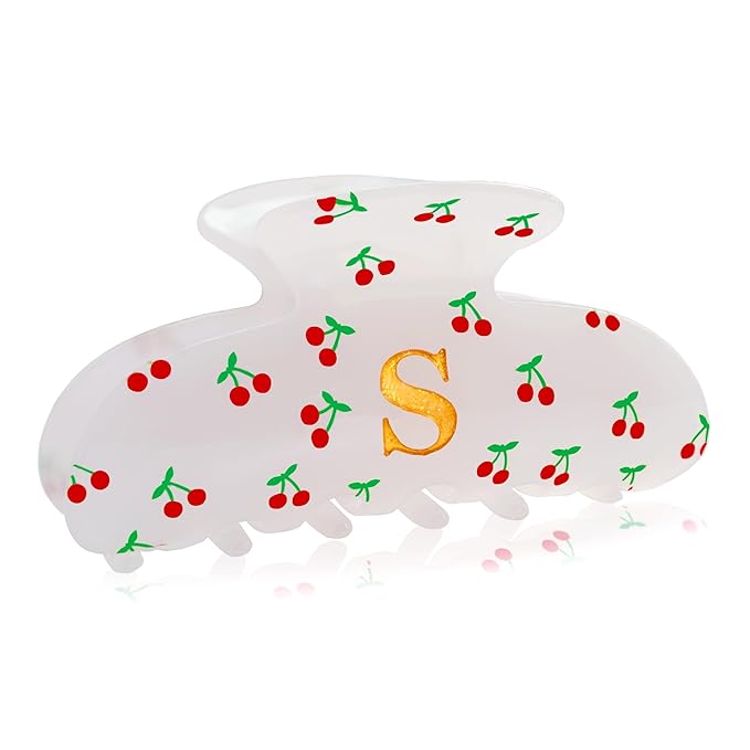 2025 Sister Birthday Gifts for Women - Initial Cherry Hair Clip, Elegant Personalized Letter Gift Wedding Bridesmaid Birthday Gifts for Sister, Cherry Print Hair Accessories, Letter S