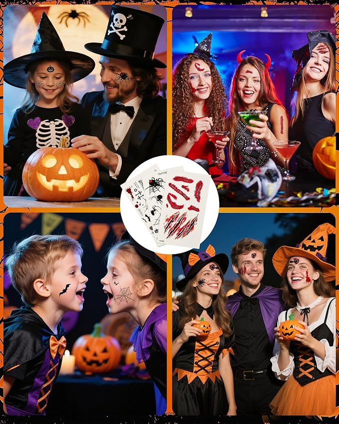 - 【Stylish Temporary Tattoos for Versatile Looks】 Complete your Halloween transformation with our realistic waterproof temporary tattoos! These detailed wound designs perfectly complement vampire makeup, skeleton looks, and scar effects. With simple 10-20 second water transfer application and easy removal using rubbing alcohol, olive oil, or baby oil, these tattoos provide instant professional-level effects. Mix and match with your face paint for endless creative possibilities this Halloween season