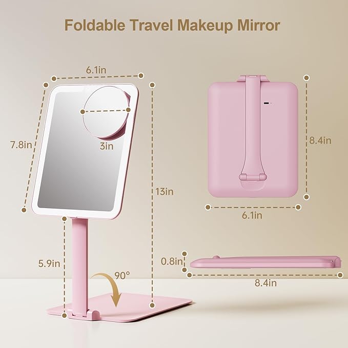 - 【Compact & Travel Design】Experience effortless portability with our sleek foldable mirror, measuring just 6.1" x 8.4". It slips seamlessly into its included velvet storage bag, making it ideal for travel, work commutes, or on-the-go touch-ups. Toss it in your backpack, suitcase, or purse—your glam station goes where you go