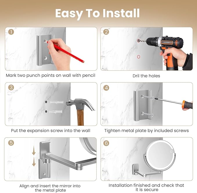 - Premium Material & Easy Installation: Made of durable aluminum alloy, ABS, and HD mirror surface, this mirror is easy to install with included screws for a sleek and lasting addition to your bathroom.