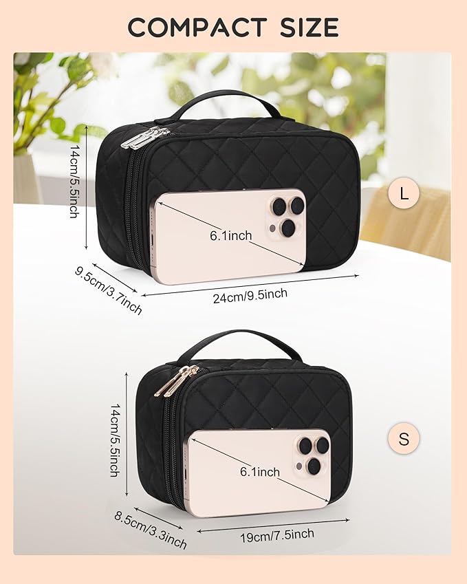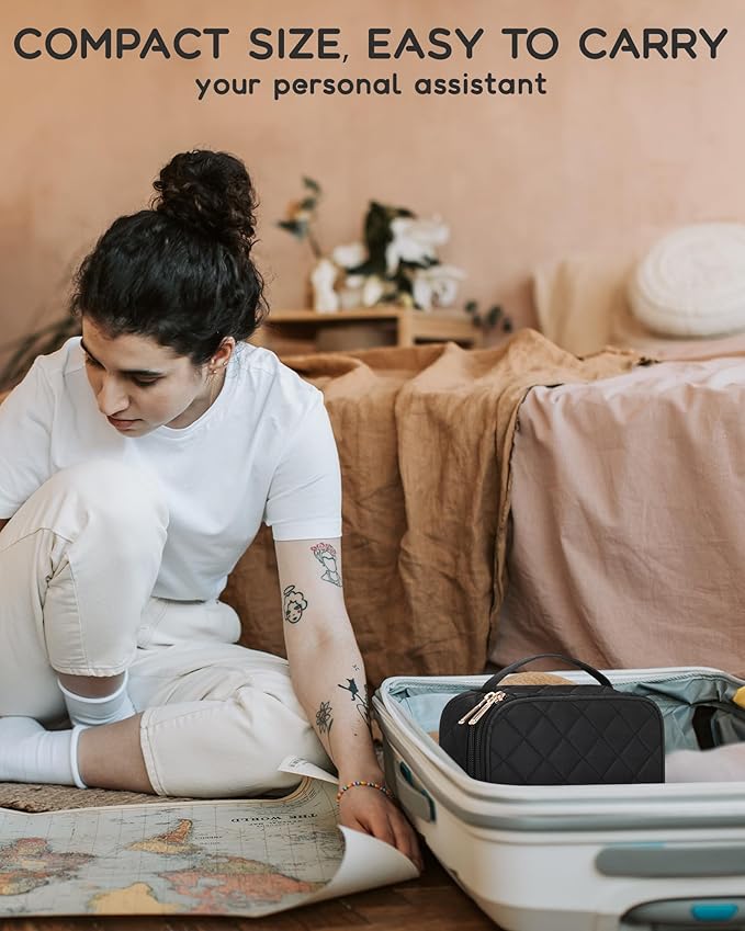 - COMPACT SMALL MAKEUP BAG: Mini Size with 7.5*5.5*3.3 in, which is lightweight and portable cosmetic bag. It will organize your beauty essentials neatly in place