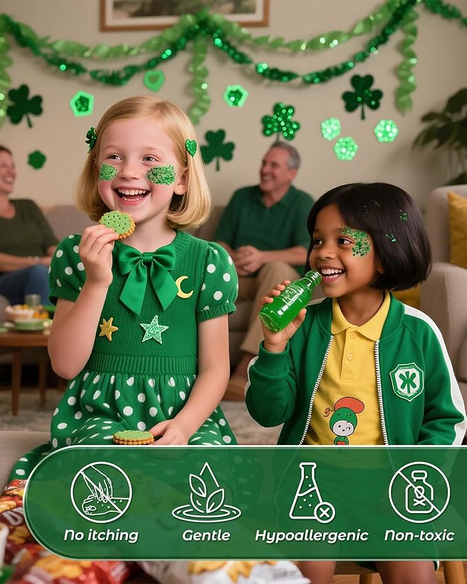 - Dazzling Holographic Green Glitter: Our glitter gels feature vibrant green and holographic chunky sequins that catch and reflect light, creating a mesmerizing 3D effect. Perfect for creating standout looks on St. Patrick's Day, at music festivals, raves, parties, or Mardi Gras