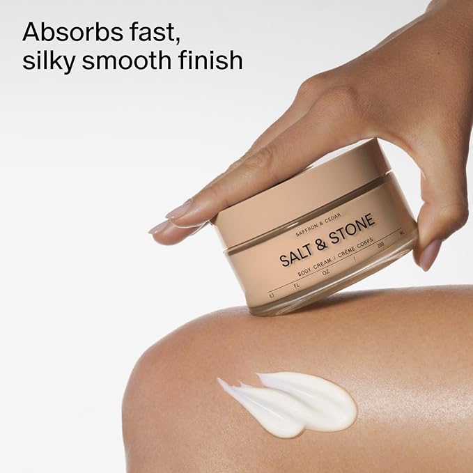 Salt & Stone Body Cream – Saffron & Cedar | Hydrating Formula with Seaweed Extracts, Spirulina & Squalane | Deep Hydration, Skin Barrier Support & Healthy Glow | for all Skin Types (6.7 fl oz)