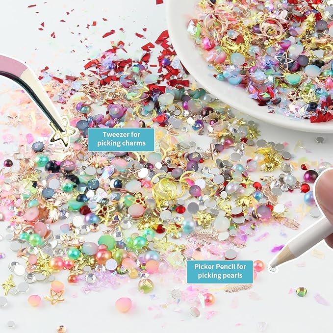 - Easy to Use for All Skill Levels: Whether you’re a beginner or a pro, this kit simplifies nail art! Use the included tweezers to pick up tiny gems/charms, then apply with nail glue (or top coat for stickers). The stickers can be directly pressed onto nails and trimmed as needed. No complex tools required—create salon - like nail art at home in minutes.