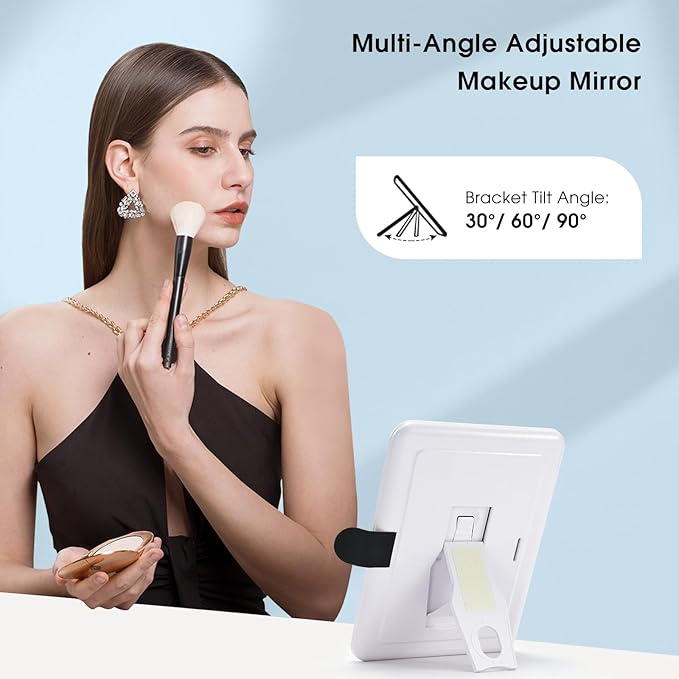 - 【3 COLOR FILL LIGHT MIRROR】- Makeup case with a smart full-screen illuminated mirror that can be independently removed for use. The mirror frame is adjustable at 30°, 60°, and 90° angles. A gentle touch of the switch allows for effortless adjustment between cold, neutral, and warm color temperatures, while a long press can vary the brightness from 0% to 100%. This functionality ensures that your face accurately reflects skin conditions and facial details, whether you are applying an exquisite party look, a commuting makeup style, or daily makeup.