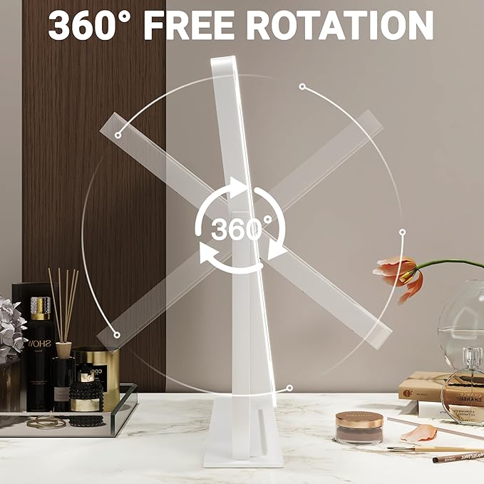 - đ¸ăMinimalistic Rounded Designă The vanity mirror 15"x12.6"with provides a perfect upper body view. 360° rotation LED makeup mirror Adjust the mirror's angle effortlessly with its smooth swivel and tilt mechanism, ensuring you achieve the perfect viewing position every time