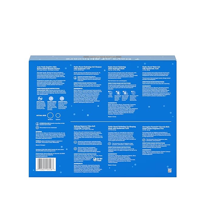Neutrogena 7 Days of Skincare Set ($56.00 Value), Daily Skin Care Essentials – Face Wash, Facial Moisturizer, Makeup Remover Wipes, Pimple Patches & More, 7 Full & Travel Size Toiletries