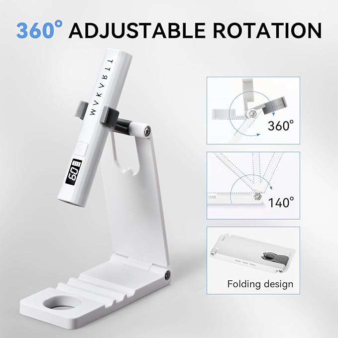 - 2-in-1 Handheld UV Lamp with Adjustable Stand: This mini handheld lamp with a 410° adjustable stand, offering both portability and hands-free curing. Use it freely in your hand or place it on the stand for flexible nail art sessions at any angle.