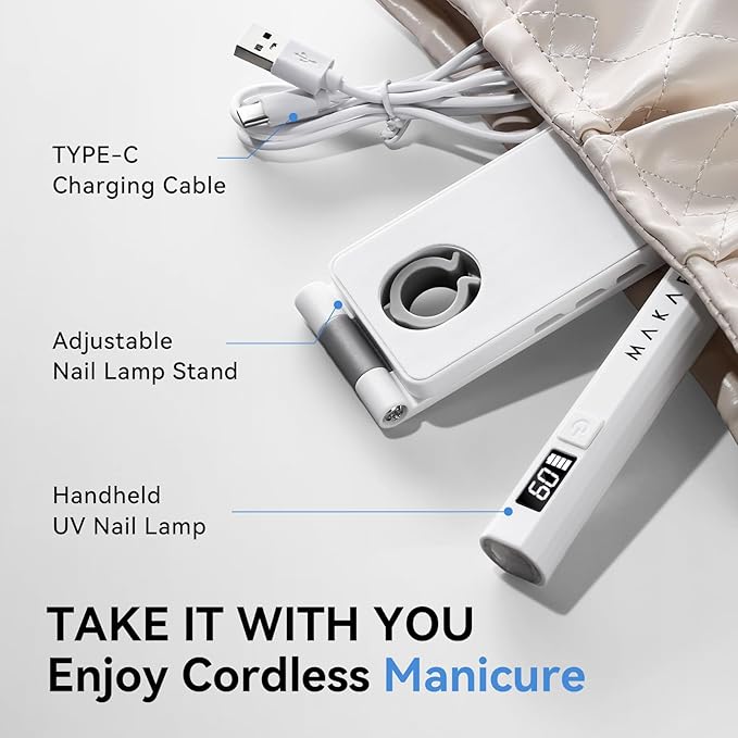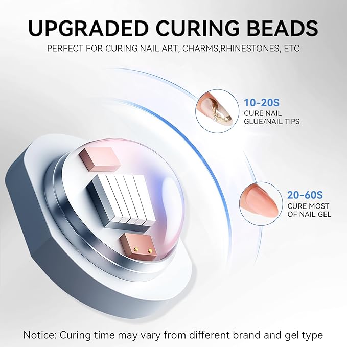 - Fast & Efficient Curing in Seconds: Equipped with powerful UV LED beads, this mini nail lamp cures nail tips, most gel polishes, builder gels, glue gels, and rhinestone gels in just 8–10 seconds, depending on layer thickness. Save time while achieving salon-quality nails.