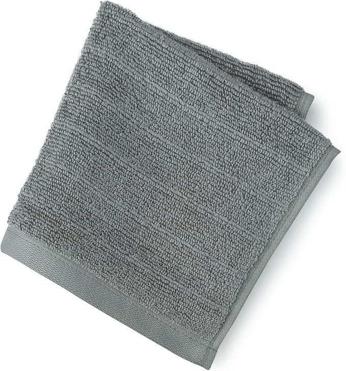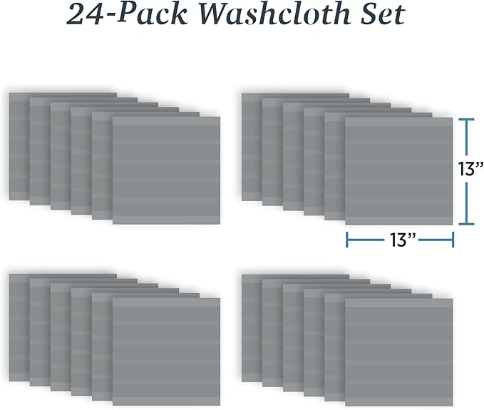 Welhome James 100% Cotton Textured Stripe Towels - 24 Pack Washcloths, Soft & Absorbent, Gray