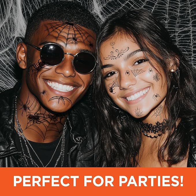 Assorted Spider Temporary Tattoos Variety Pack – Creepy Crawly Halloween Tattoos for Kids, 50+ Spooky Designs, Party Favors, Trick-or-Treat Handouts & Classroom Prizes