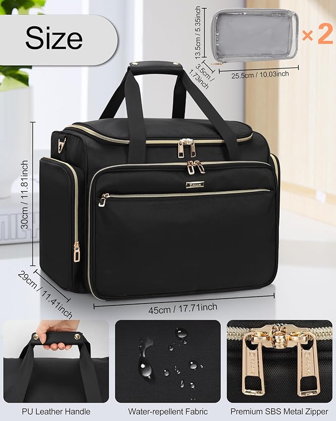- Large Capacity: The size of the hairdressing bag is 17.71nch*11.4inch*11.81inch, with the rich pocket structure and super large compartment inside the bag, suitable for storing hair dryer, curling iron, scissors, comb, hair clips, shampoo, cosmetics, etc. Items, enough to meet the carrying needs of professional hairdressers and hairdressers.
