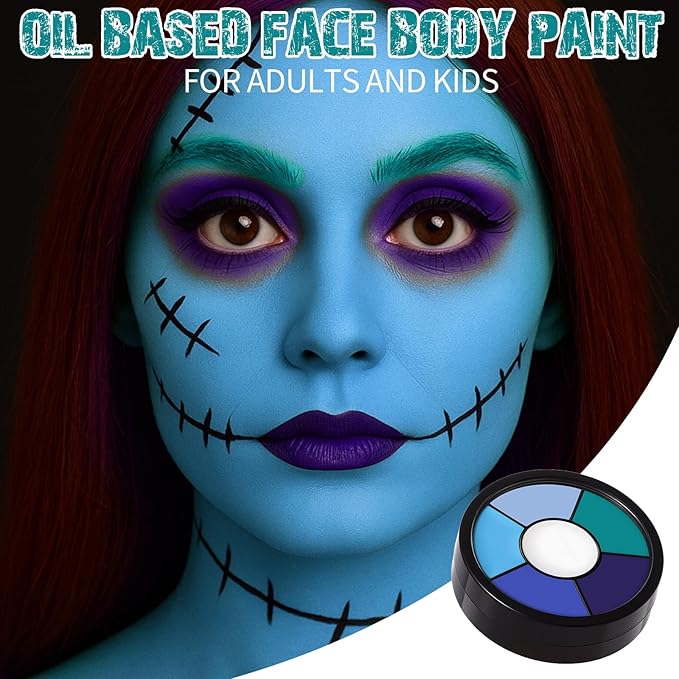 BOBISUKA Blue Face & Body Paint – 6 Colors Cream Washable Face Paint for Corpse Bride Sally Makeup Avatar Mermaid Costume & Theme – Easy to Blend, High Pigment & Long Lasting