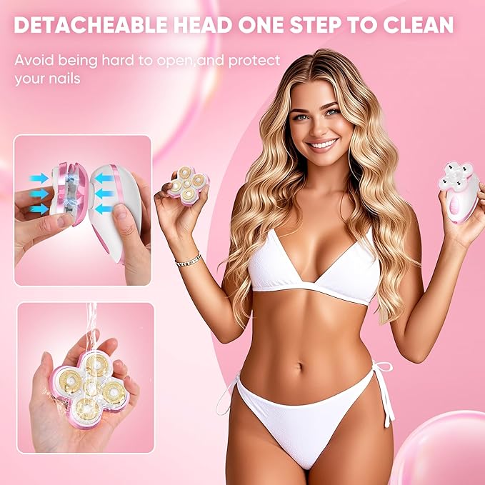 - ๐๐๐๐ ๐๐๐ญ ๐๐ง๐ ๐๐ซ๐ฒ ๐๐ก๐๐ฏ๐: This electric razor for women can satisfy your dry shave or refreshing wet shave. One step to clean with detachable head, better protect your nails and say goodbye to blade damage. ๐๐ฅ๐๐๐ฌ๐ ๐๐จ ๐ง๐จ๐ญ ๐ฌ๐ข๐ง๐ค ๐ข๐ญ ๐ข๐ง ๐ญ๐ก๐ ๐ฐ๐๐ญ๐๐ซ