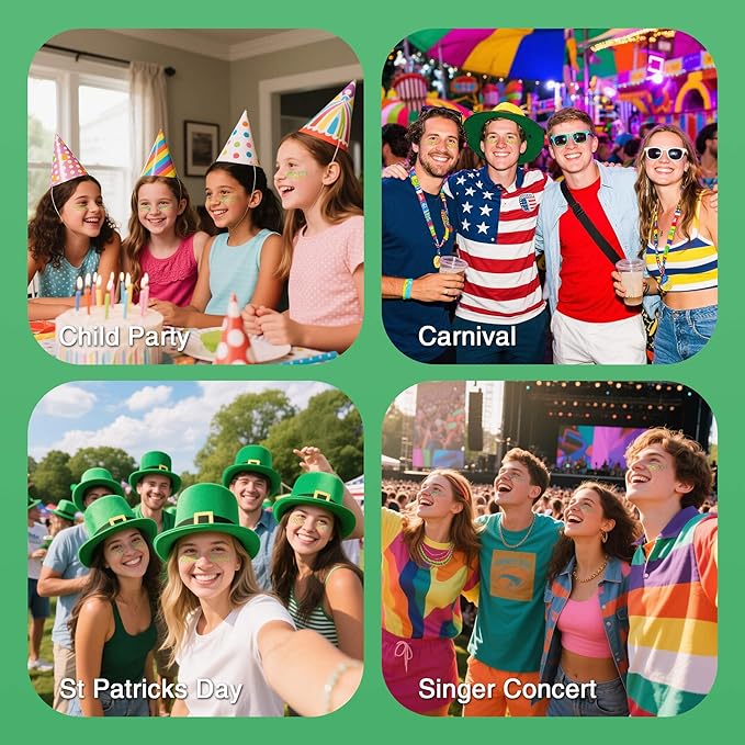 - EASY TO USE AND REMOVE:Saint Patricks Day green gold face glitter stick is designed for effortless application. Just swipe it on for an instant sparkle. When it's time to clean up, the glitter easily washes off with remover cream leaving no residue behind