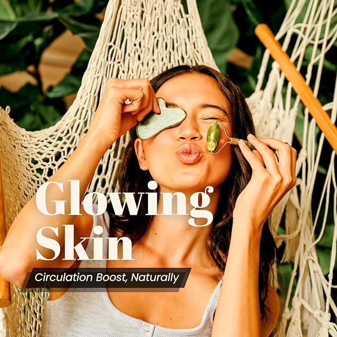 ROSELYNBOUTIQUE Gua Sha Facial Tools & Jade Roller Original Face Massager for Puffiness Wrinkless Skin Care Routine - Self Care Gift for Men Women