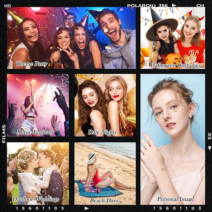- Waterproof & Long for All Night——Crafted from premium waterproof materials, these Halloween Face Patches are built to keep up with your Halloween adventures. Glitter Freckle staying vibrant and intact through hours of dancing, candy collecting, or haunted house visits—so you can stay stylish and festive from party start to midnight.