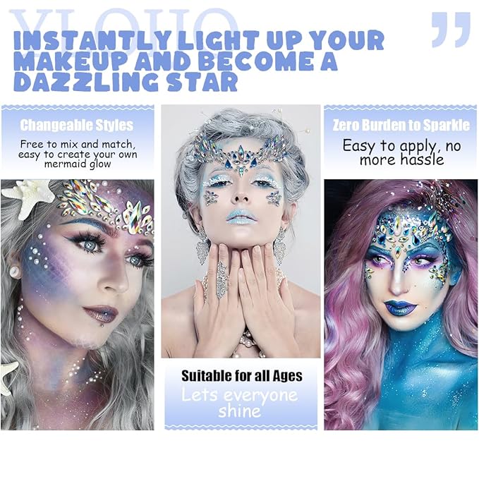 - It comes with 2 different styles of gemstone stickers that can be freely combined and matched to easily create a dreamy mermaid makeup look or a dazzling party outfit, meeting your creative decoration needs.