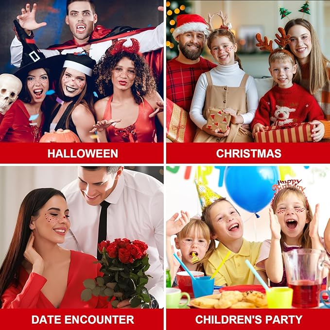 10PCS Halloween Glitter Freckles Face Tattoo, Sparkle Freckles for Women and Kids, Cute Star Waterproof Gold Temporary Face Tattoos Glitter Glow Up Patches (10PCS Red)